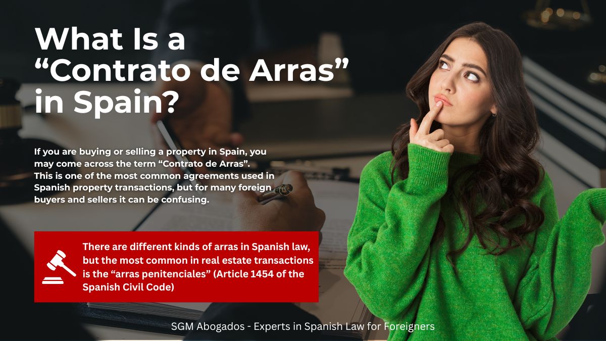 What Is a “Contrato de Arras” in Spain? If you are buying or selling a property in Spain, you may come across the term “Contrato de Arras”. This is one of the most common agreements used in Spanish property transactions, but for many foreign buyers and sellers it can be confusing.